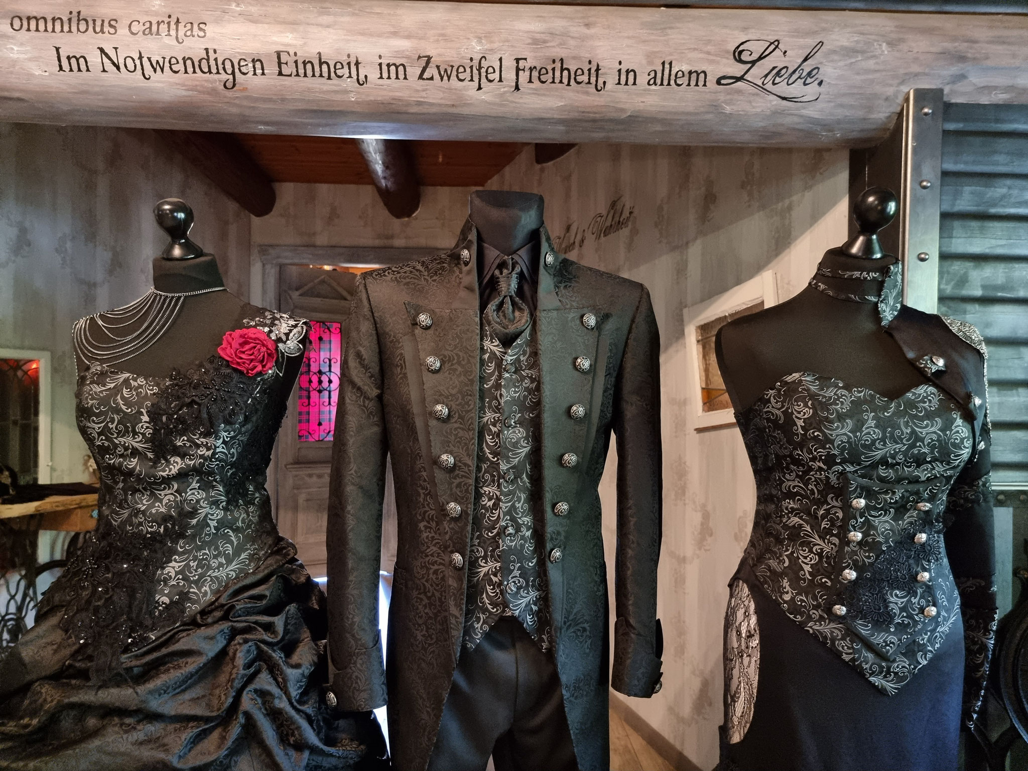 Your magic journey to your extraordinary bridal gown, or your steampunk groom coat or any you need to show your soul starts here. You can order online or travel to the Lucardis Feist Store in Germany. Please contact us to